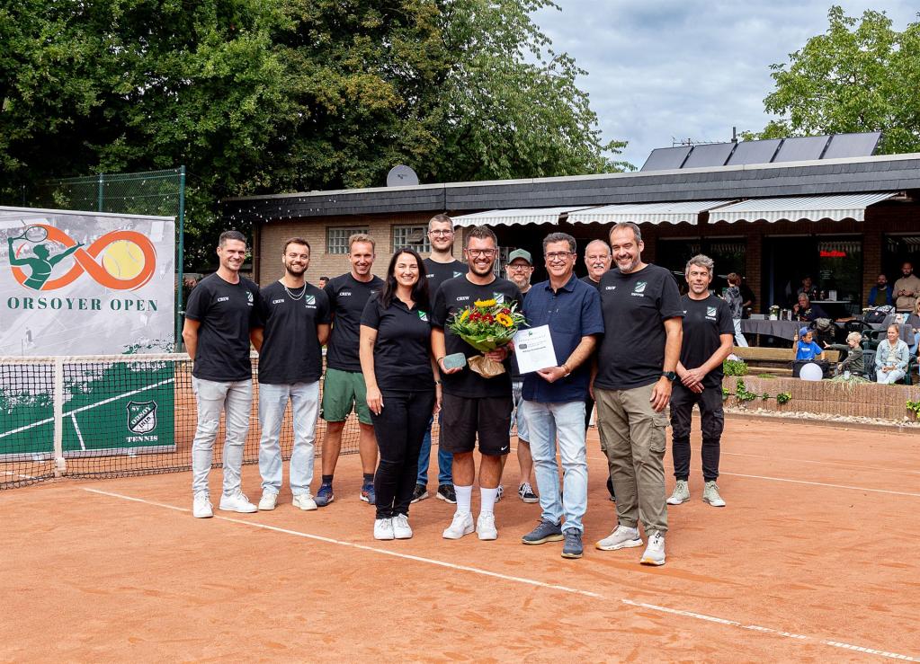 „Auch wenn die Veranstaltung der Orsoyer Open eine Teamleistung ist, so sticht Adrian Fertykowski durch seinen unermüdlichen Einsatz für das Turnier heraus. Adrain ist der gedankliche Vater der „Orsoyer Open“ und das Gesicht des Turniers“, unterstrich Stephan Karl (1. Vorsitzender der Tennisabteilung SV Orsoy).